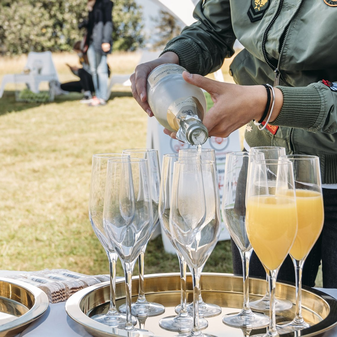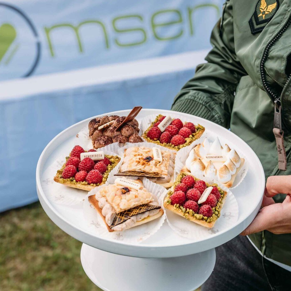 Wir empfangen unsere Fluggäste auf Wunsch mit einem kleinen Sektempfang und Petit Fours Minitörtchen frisch aus dem Taunus.